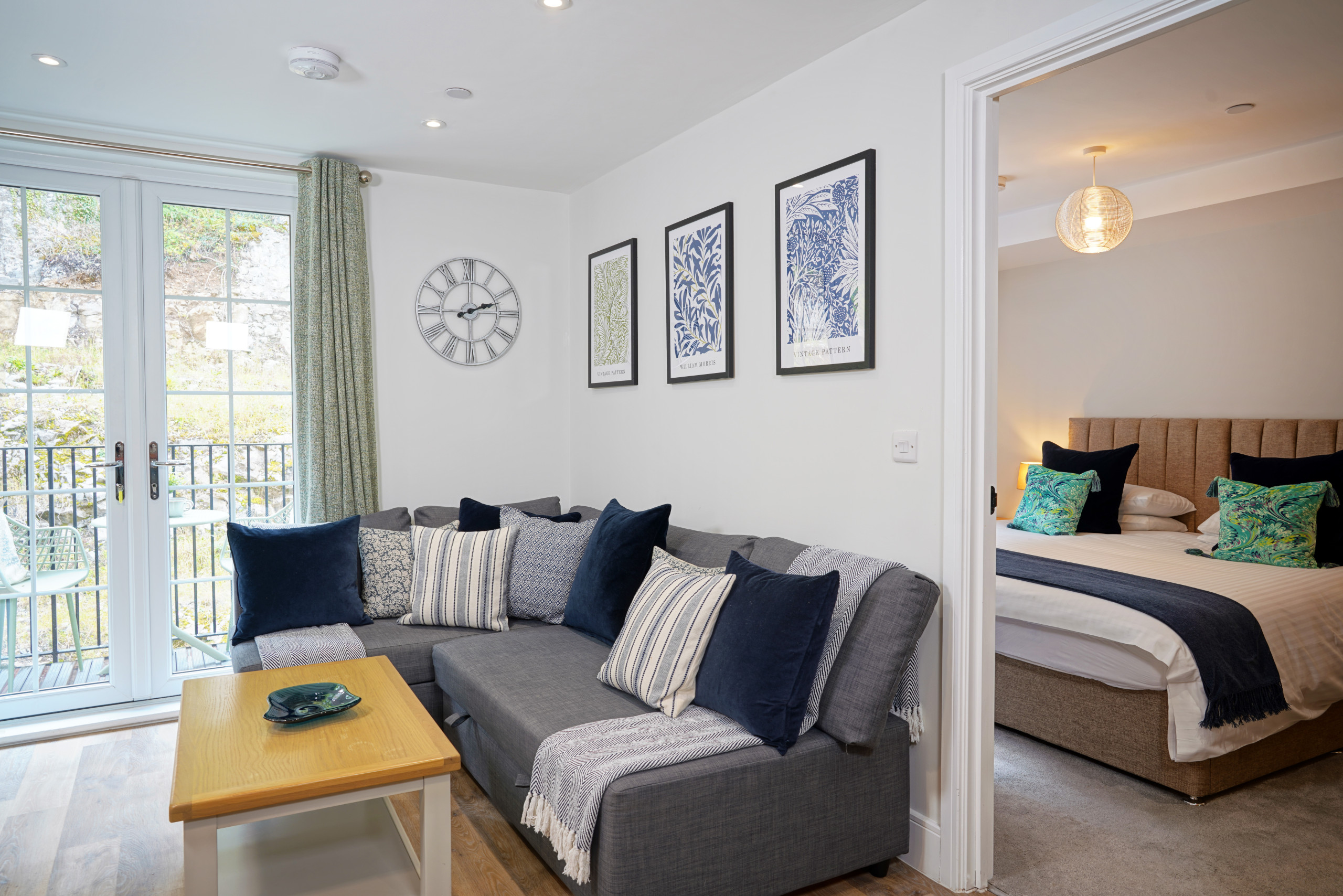 Living area: Sofa (can be converted to a sofa bed for 1 - 2 x extra guests), Smart TV and dining table and chairs for 4.