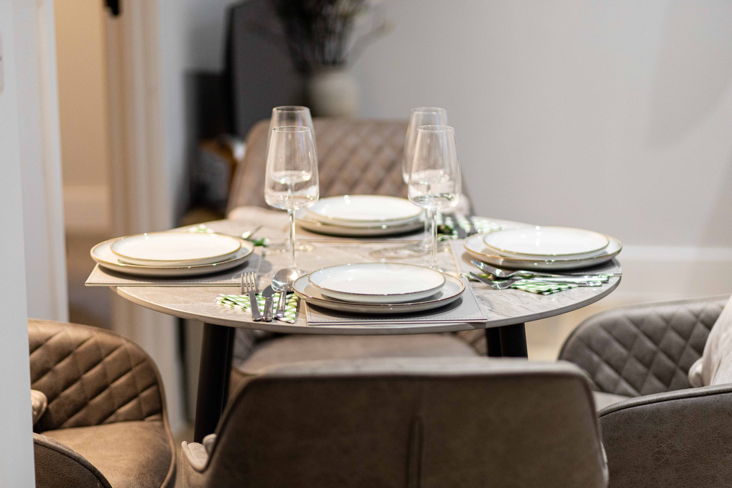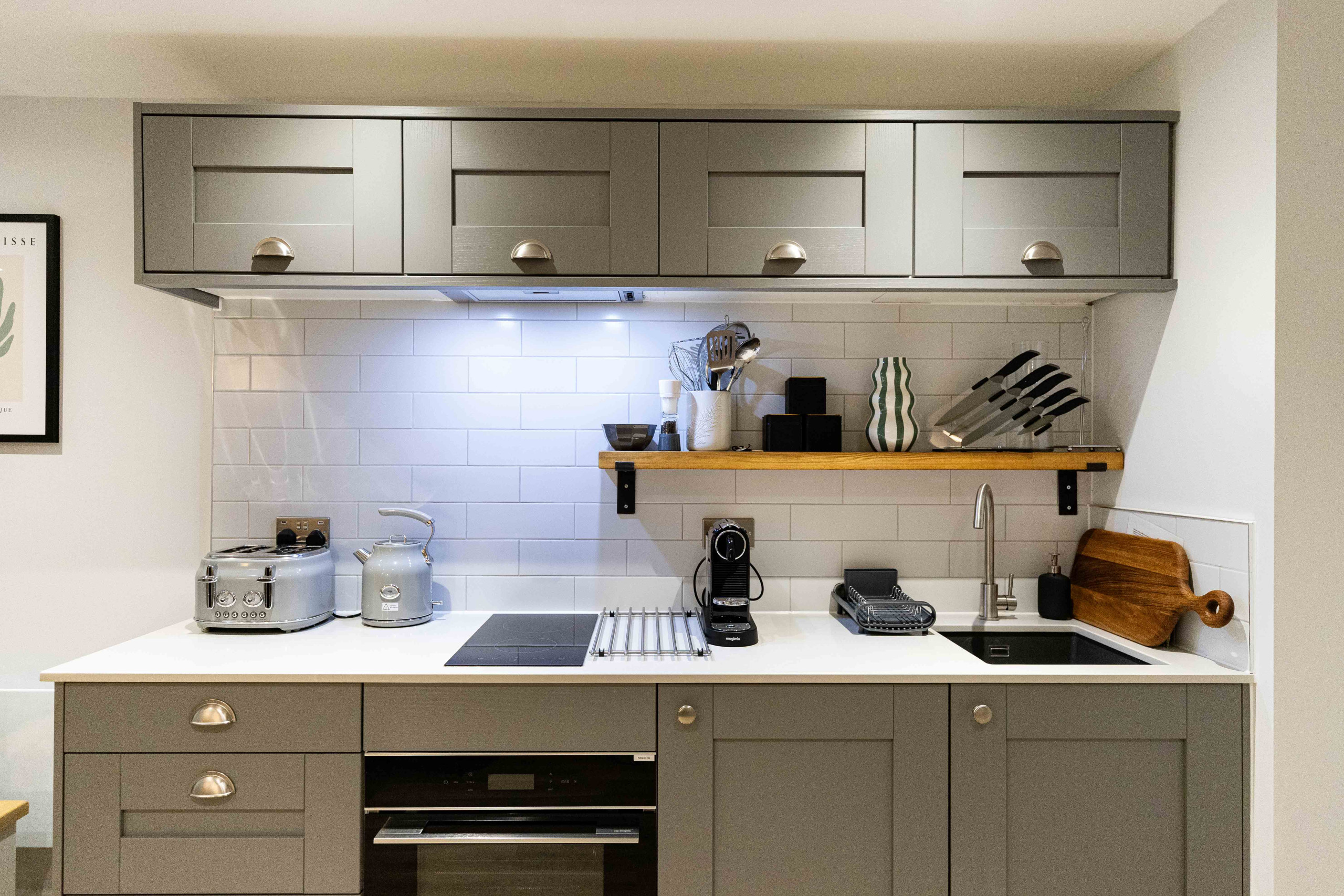 Kitchen area: Offering a fully integrated kitchen with a range of appliances and equipped with all you need for a self-catering stay including an electric oven, microwave, induction hob, Nespresso coffee machine and under-counter fridge with freezer drawer compartment.