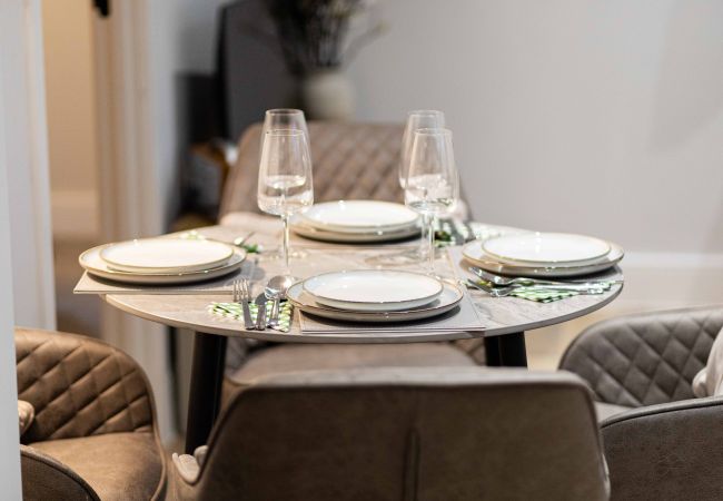 Living area: Sofa (can be converted to a sofa bed for 1 - 2 x extra guests), Smart TV and dining table and chairs for 4.