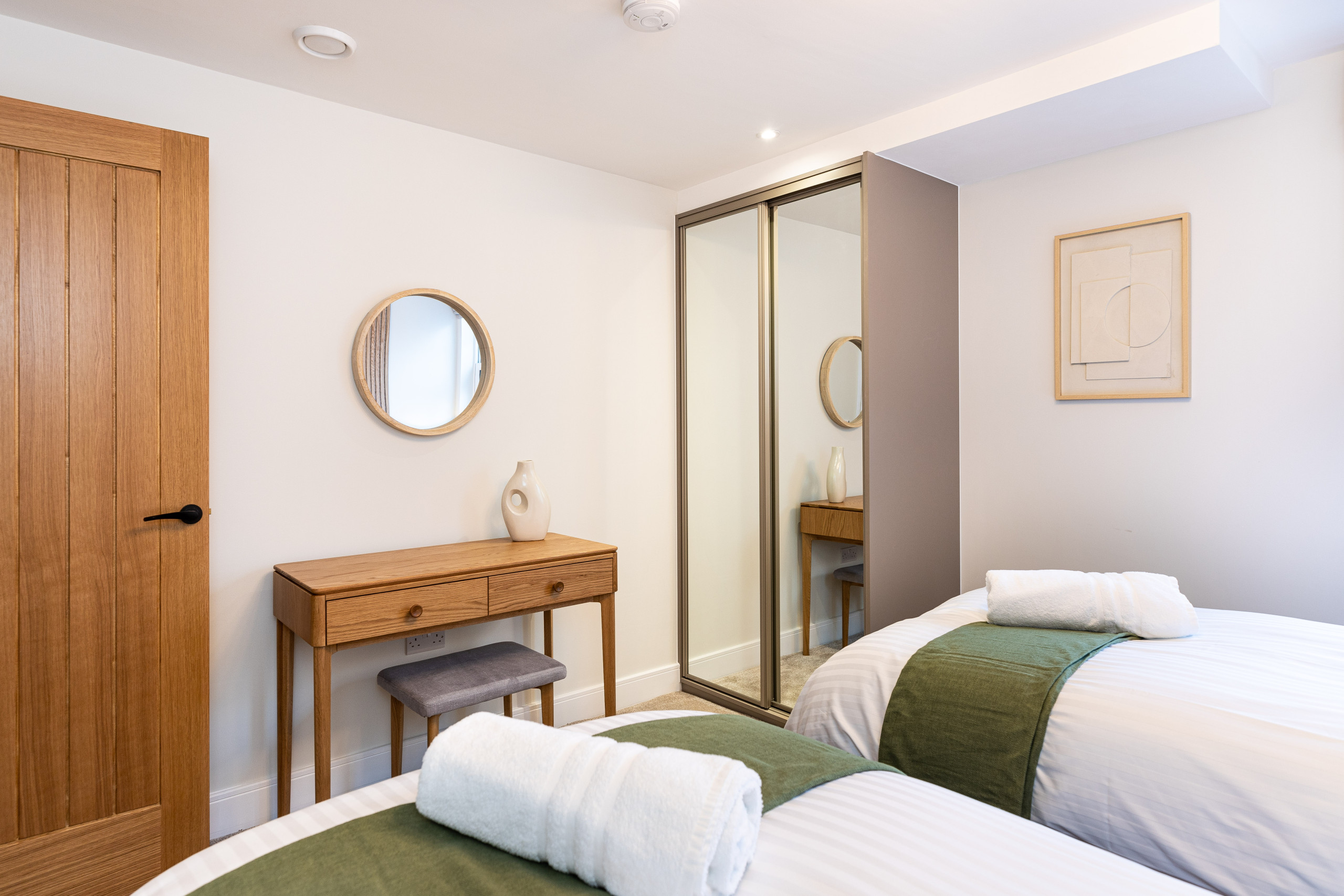 Bedroom 2: Super-king size double bed (can be made into twins upon request) with a fitted wardrobe.