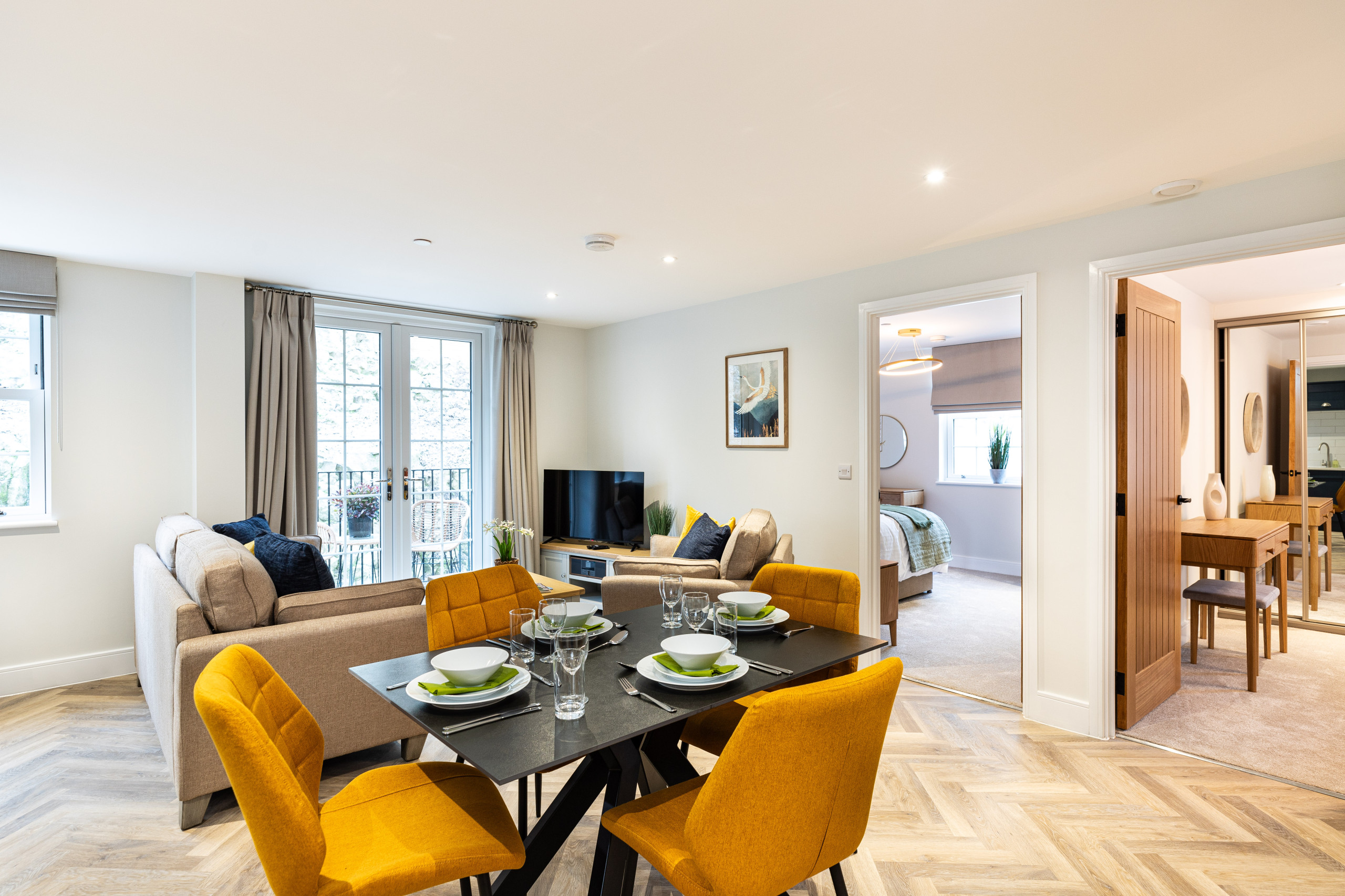 A luxury rear facing 1st floor apartment with open plan living and dining and 2 double bedrooms. This apartment is stunningly laid out making use of all the space: