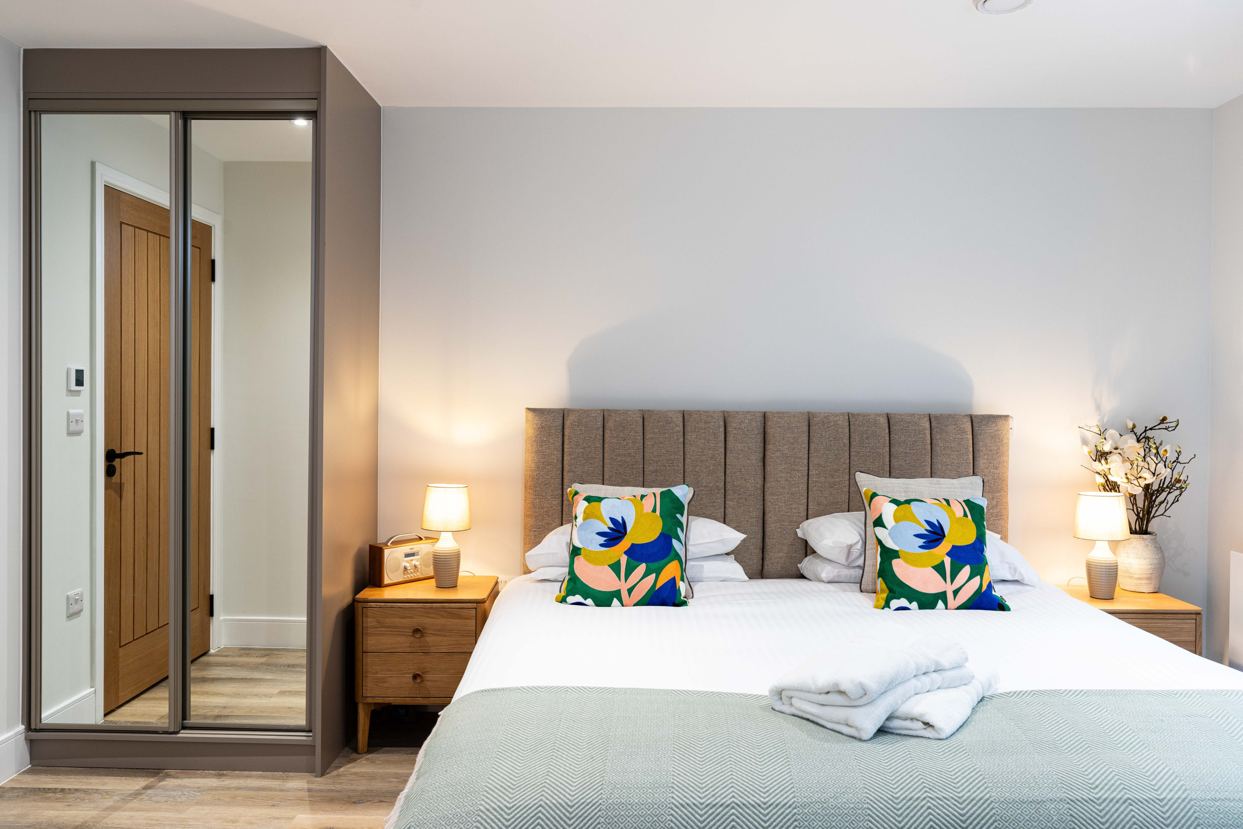 Sleeping area: Super-king double bed (or twin upon request) with a fitted wardrobe.