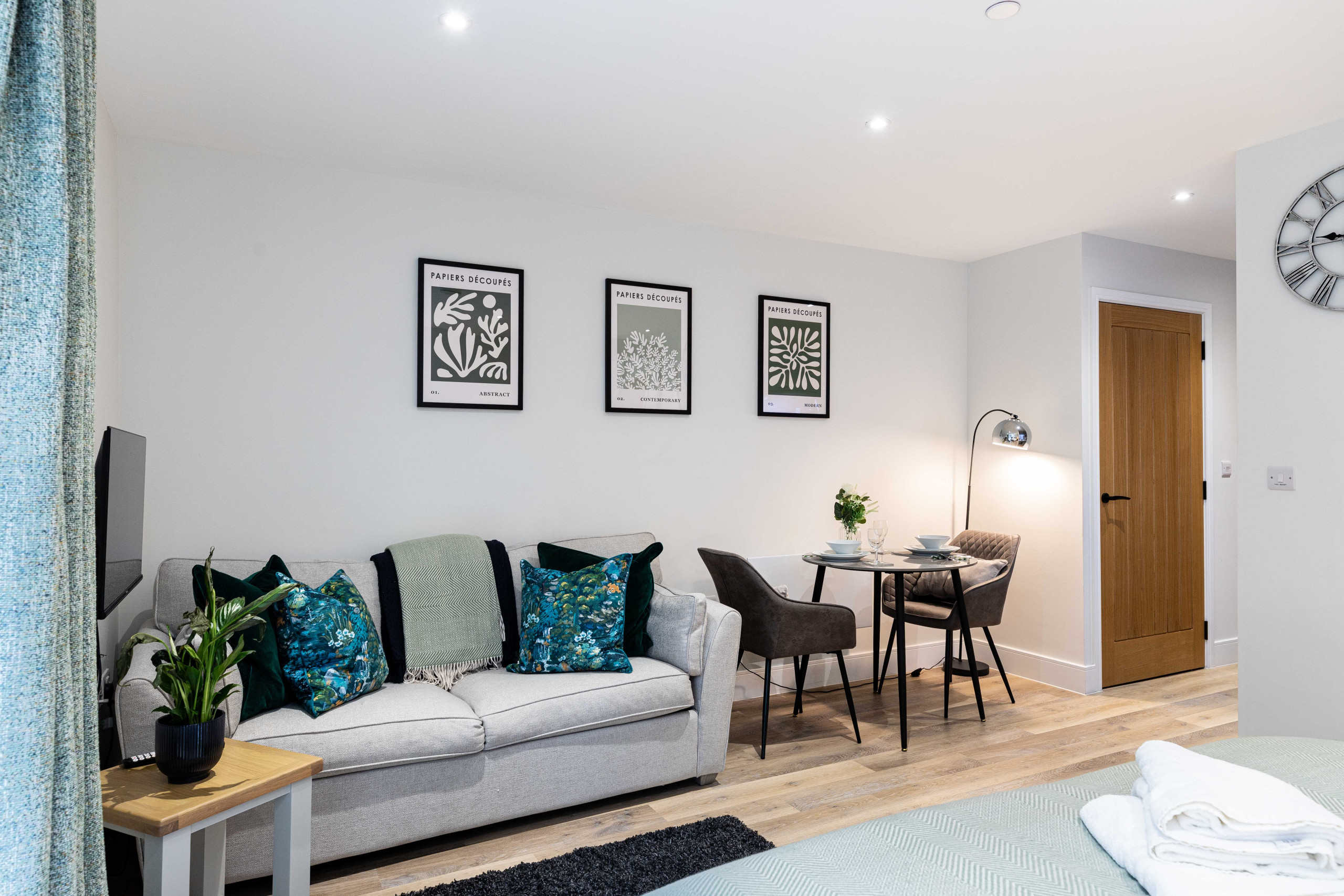 Living area: Sofa (can be converted to a sofa bed for 1 x extra guest), Smart TV and dining table and chairs for 3.